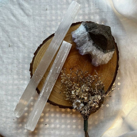A Selenita é um cristal antigo muito poderoso para captar a vibração da terra, em sintonia com o bem maior de todos os seres. Ela carrega uma alta frequência e intensidade de energia que ultrapassa quase todas as pedras. Assim, ela é perfeita para abrir, limpar e ativar os Chakras da coroa e da coroa superior.