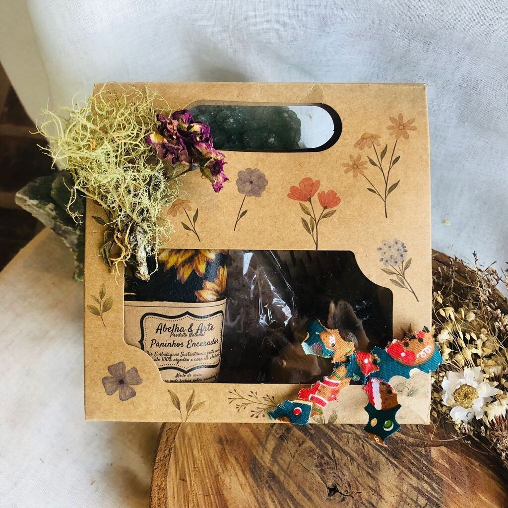 Kit M contém: 1 vela de cera de Abelha em formato de abelha1 Sabonete - Mel e aveia1 Pano encerado para fechar potes (tam. M)