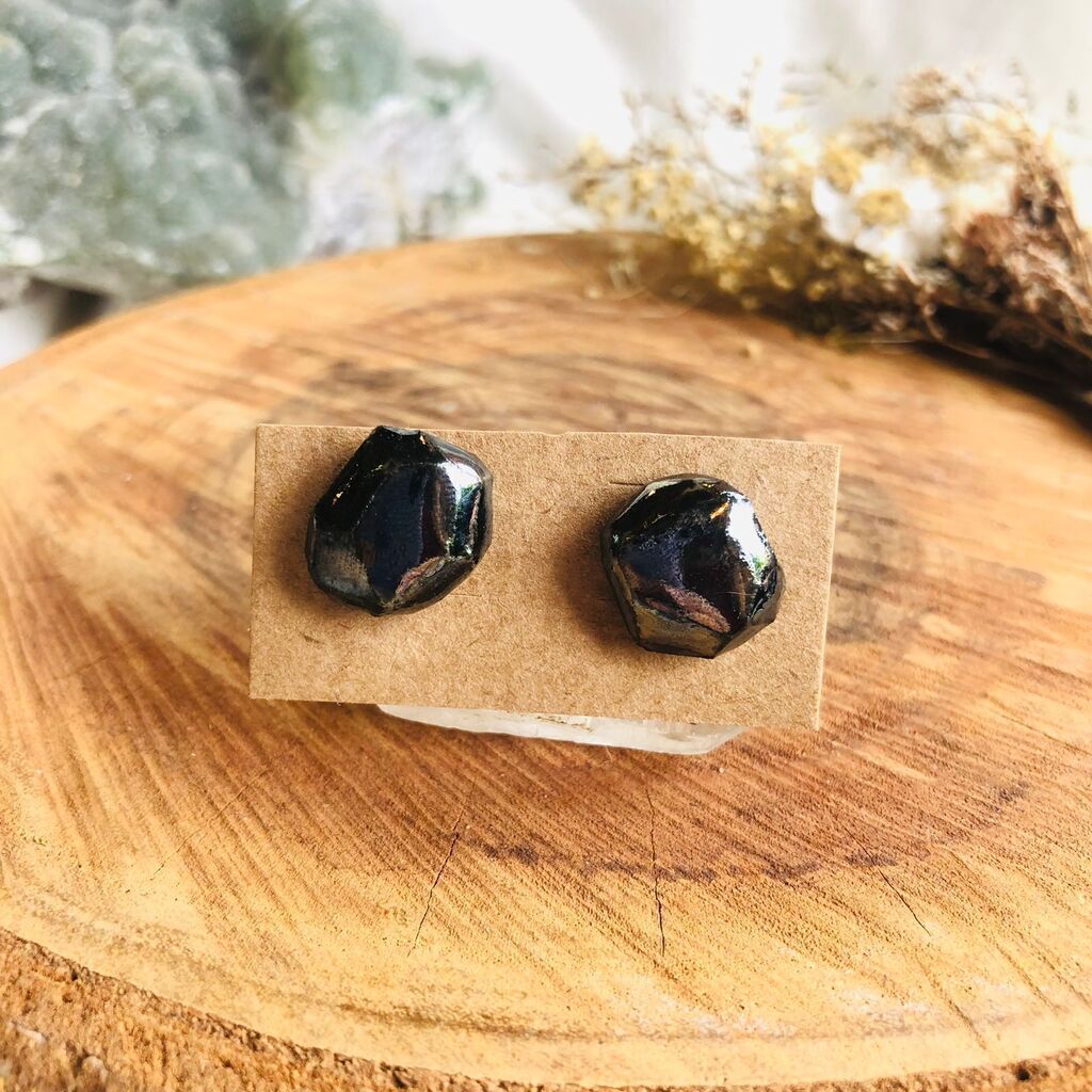 Brinco feito em cerâmica artesanal cor preto e dourado.