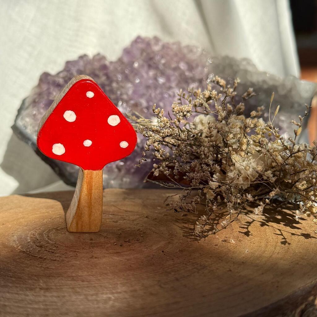 Cogumelo de madeira decorativo.
