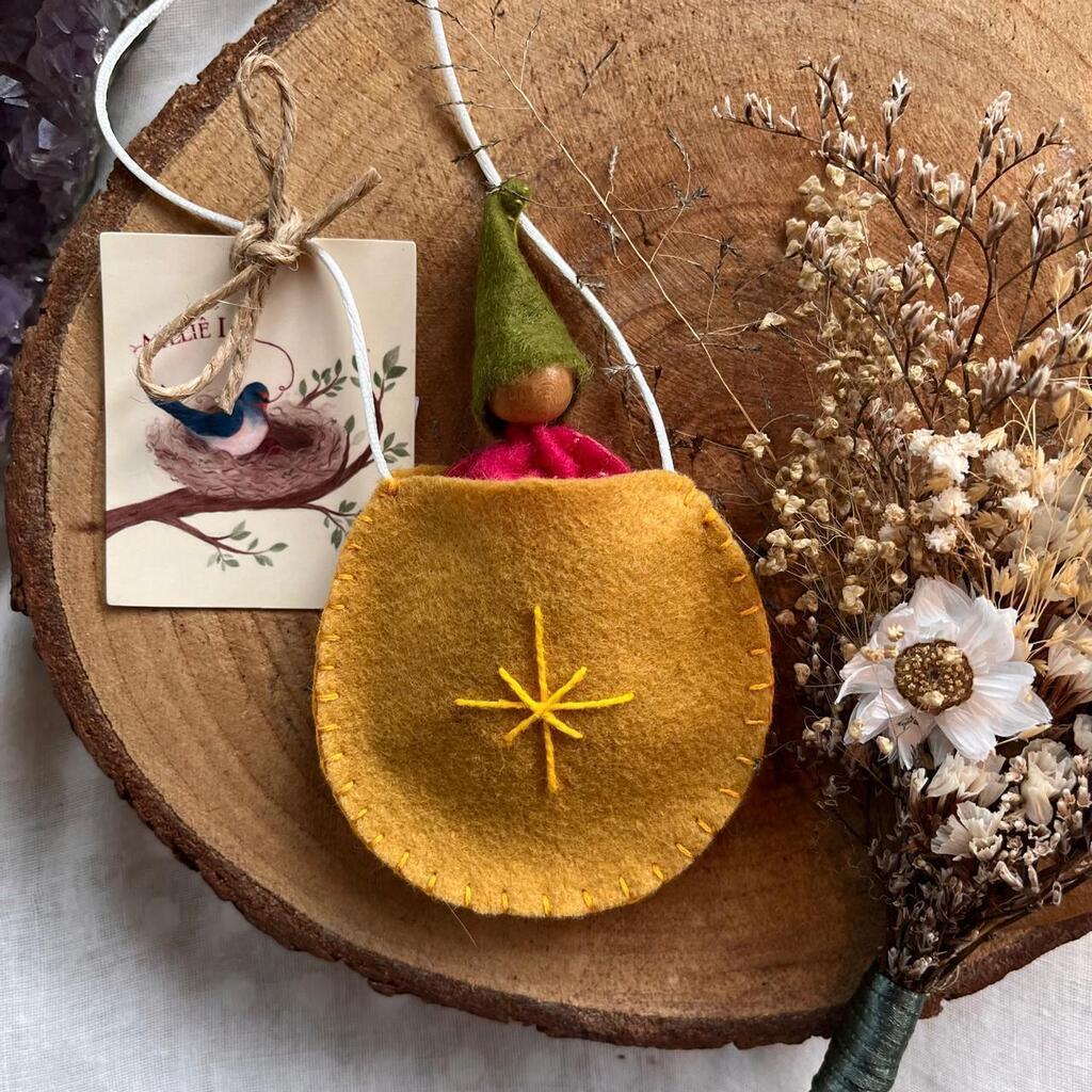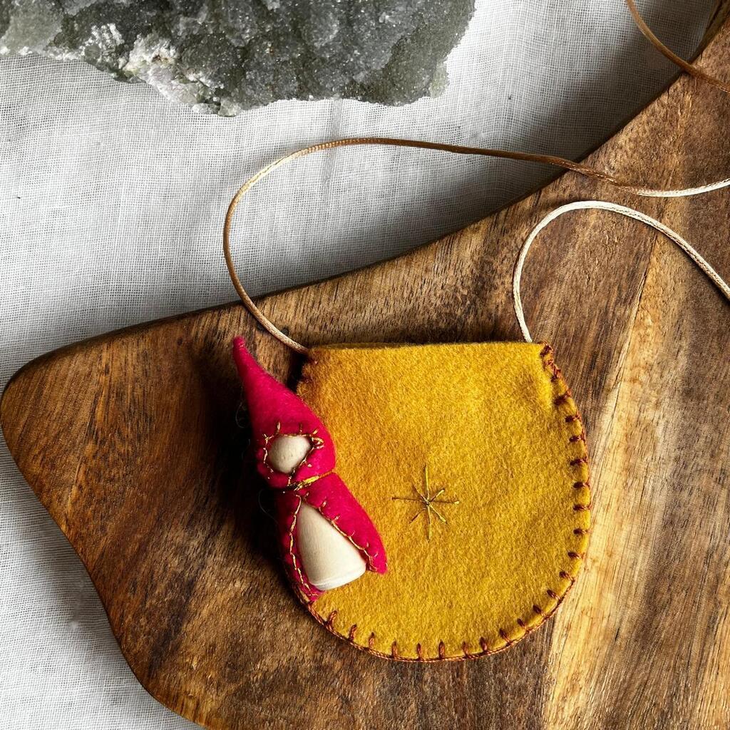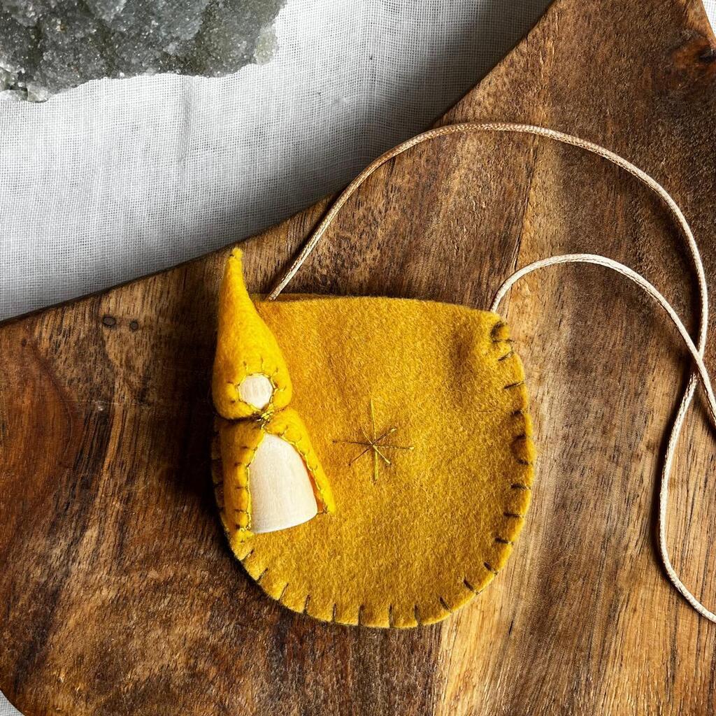 Colar com pingente em formato de folha com ser encantado feito artesanalmente pela técnica de feltragem.