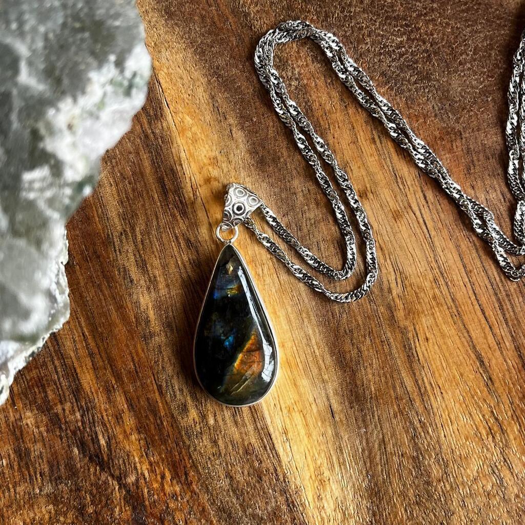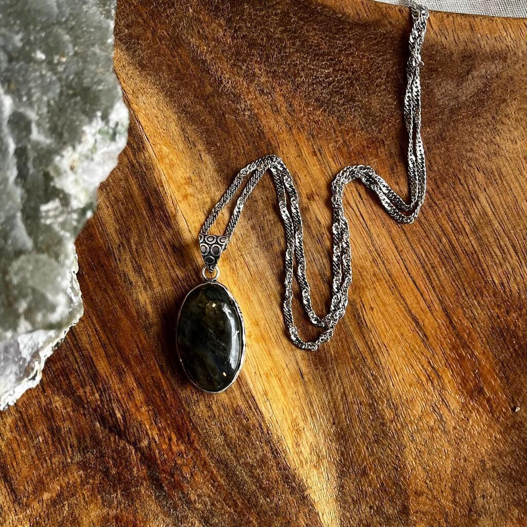 Labradorita, pedra da magia, promove maior conexão espiritual, desperta a vontade de conectar-se mais consigo mergulhando na autodescoberta aumenta o grau de sincronicidades, abre para visão de registros akashicos e de futuro. Nos dá proteção na viagem entre mundos.