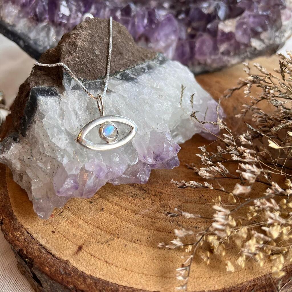 Olho Grego | Pedra da Lua - com corrente de 40 cm