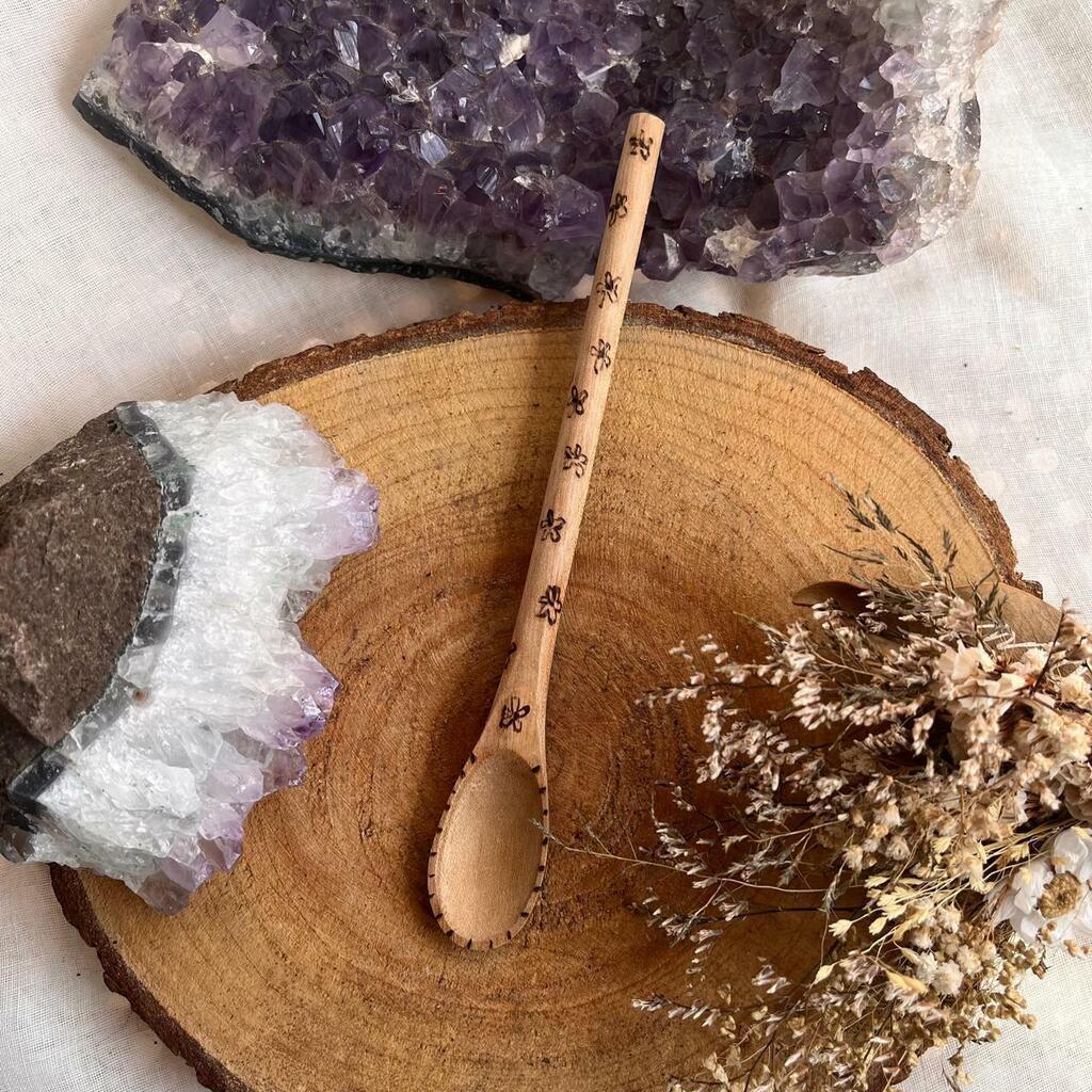 Colher de Pau com desenhos em pirografia feito artesanalmente por Atelie Sol Y Luna.Comprimento: 16,5cm