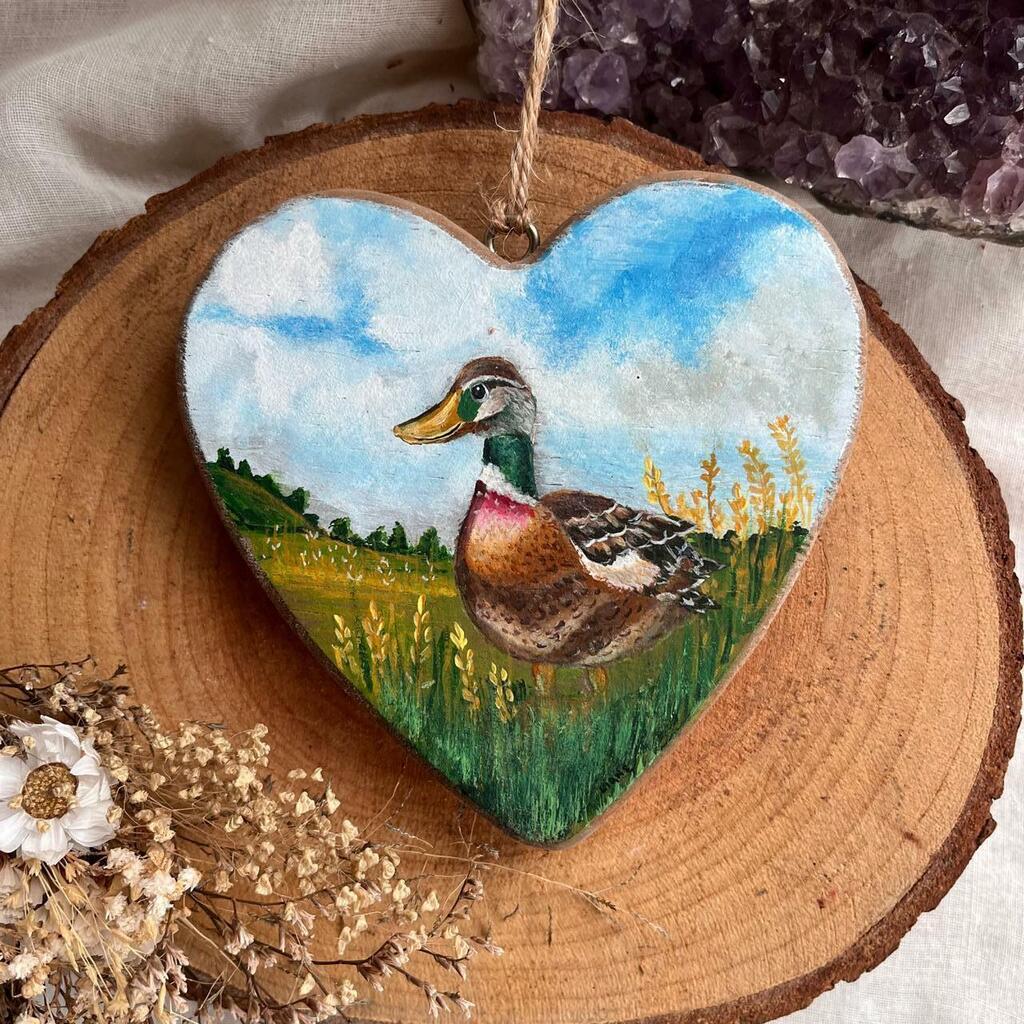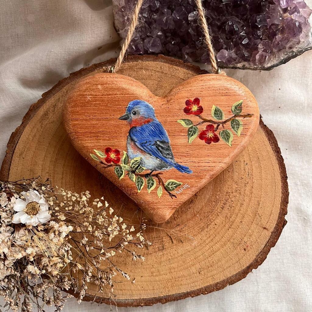 Coração de madeira pintado a mão, feito com madeiras nobres para pendurar.Por LyartesMedida aproximada: 11cm