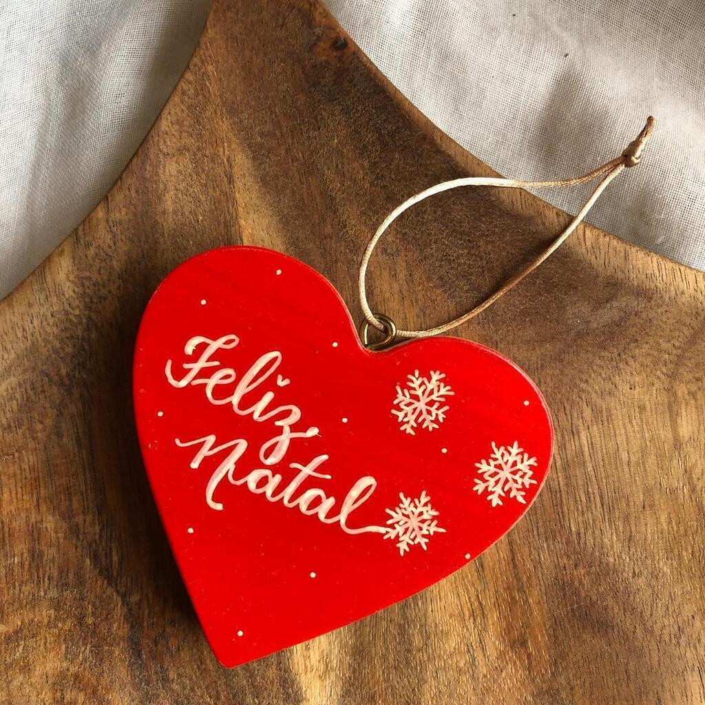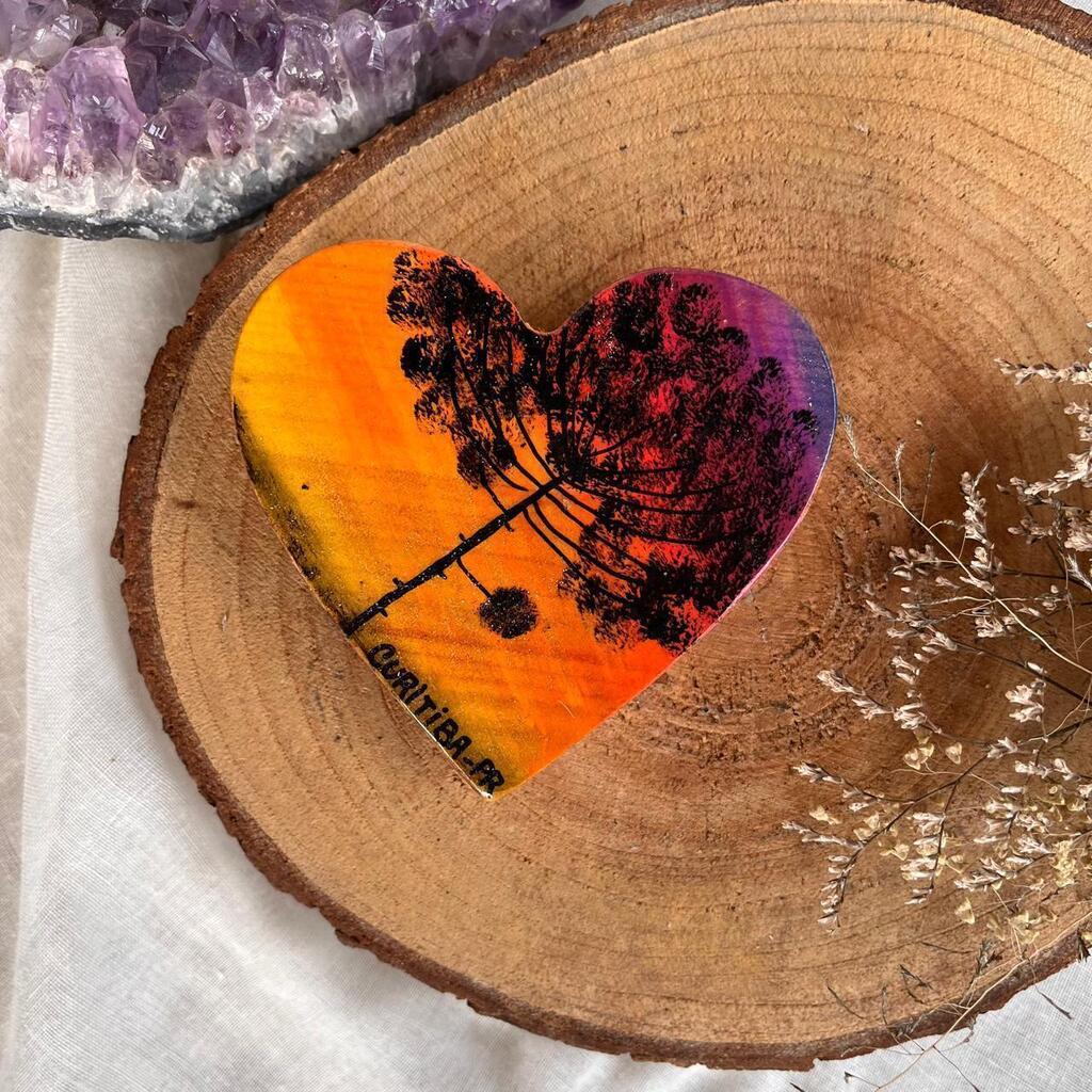 Coração feito a mão em Pinus, com cordão para pendurar.