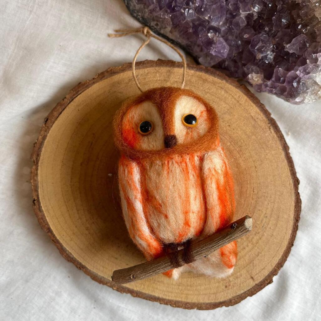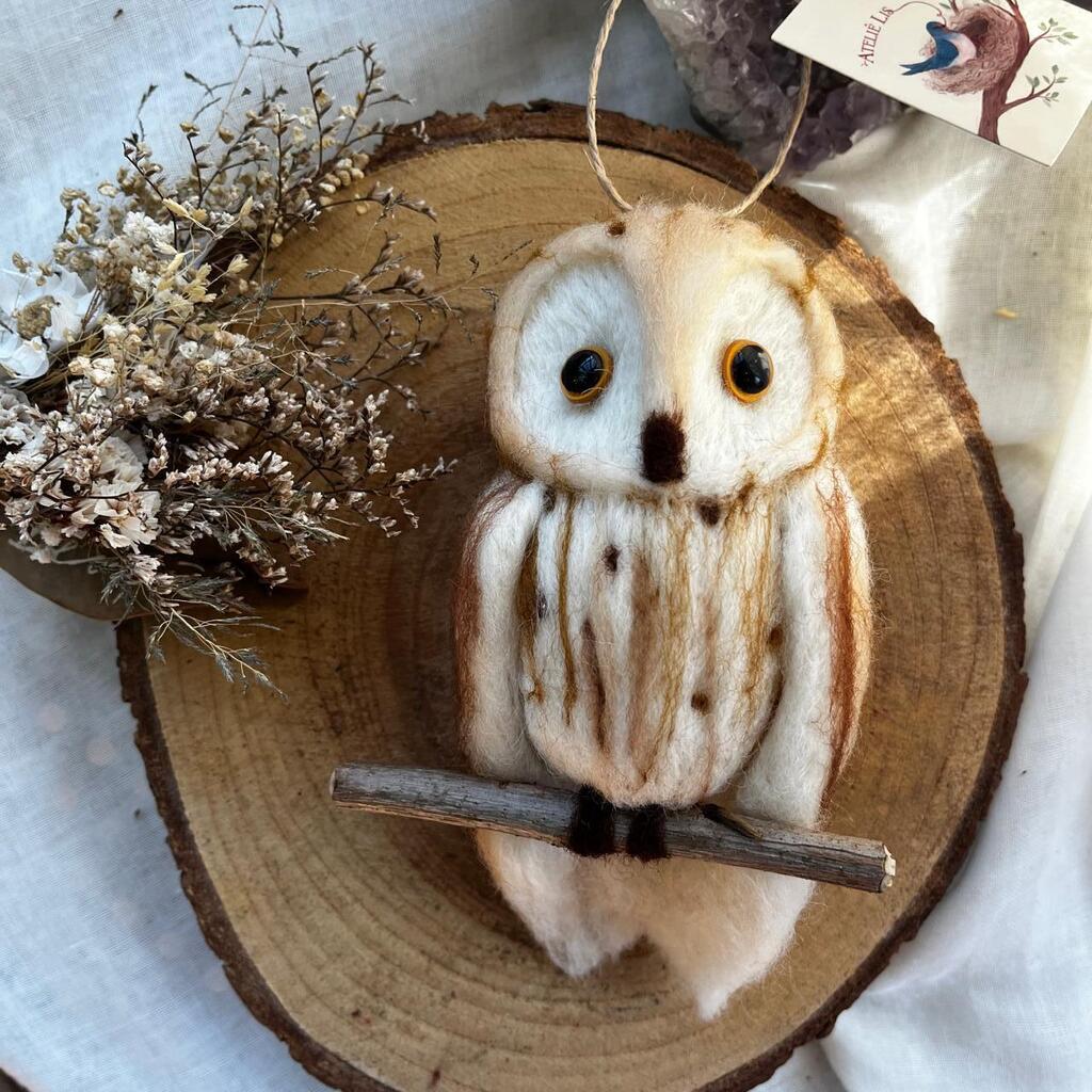 Coruja feita artesanalmente pela técnica de feltragem.