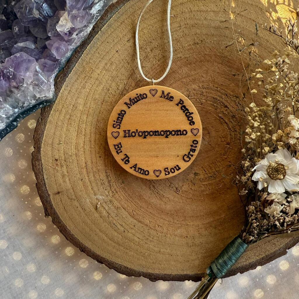 Bolacha com simbologia feita a mão em Pinus, com cordão para pendurar.