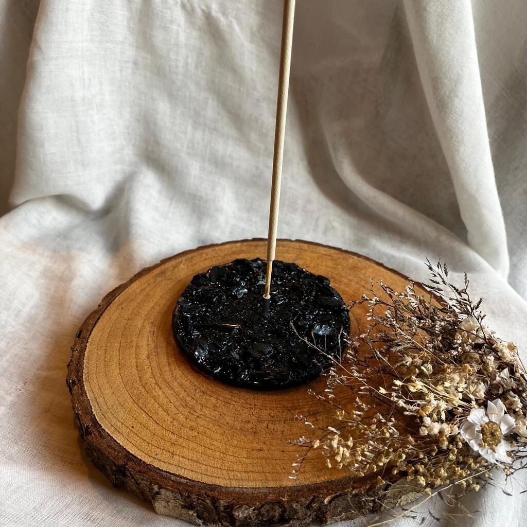 Incensário de resina artesanal com pedras coladas. Tamanho aproximado: 9cm