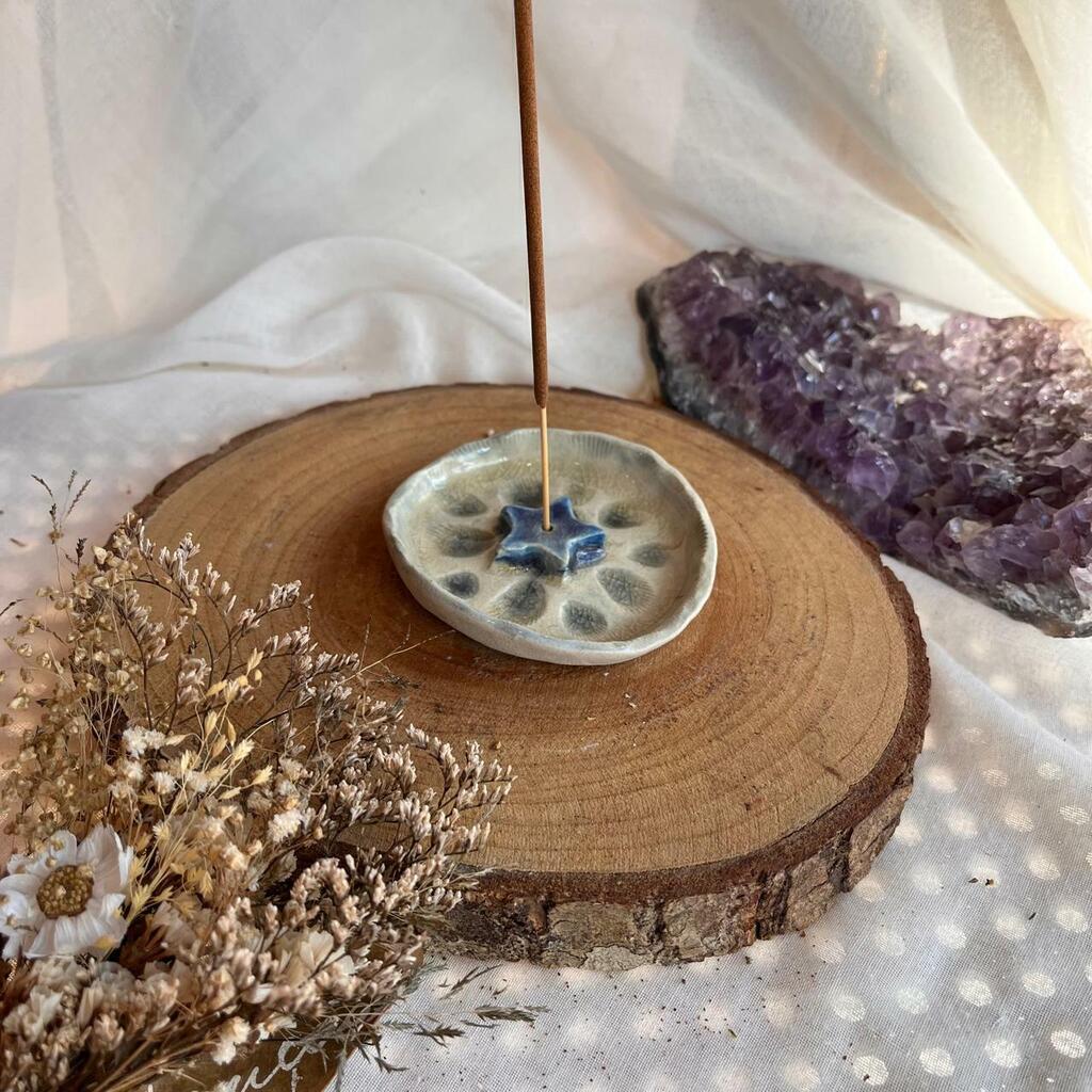 Incensário redondo com Estrela azul no centro, em Cerâmica por Barroca Ateliê.Medidas aproximadas: 8cm de diêmetro por 1cm de altura
