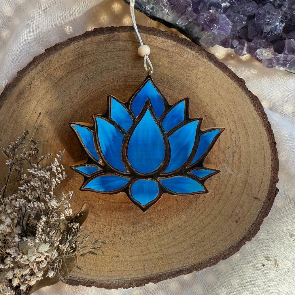 Flor de Lótus feita a mão em Pinus, com cordão para pendurar.