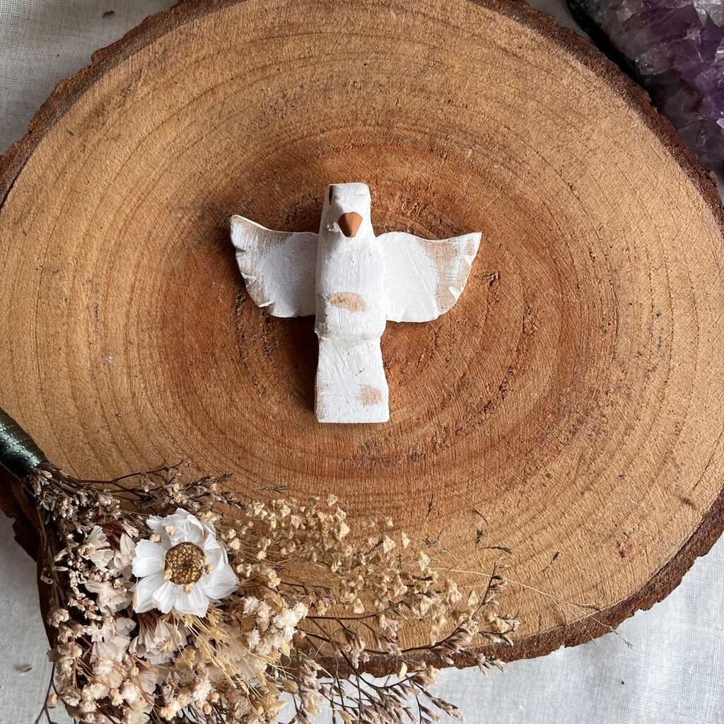 Mini espírito santo, feito em gesso ou madeira.