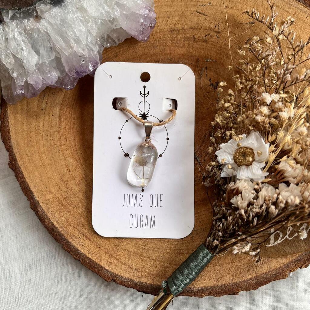 Pingente feito com pedra 100% natural e metal prateado.