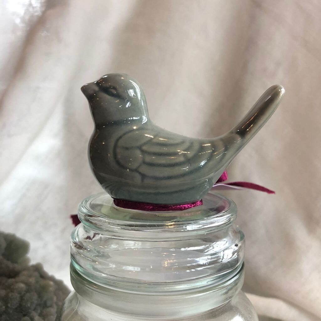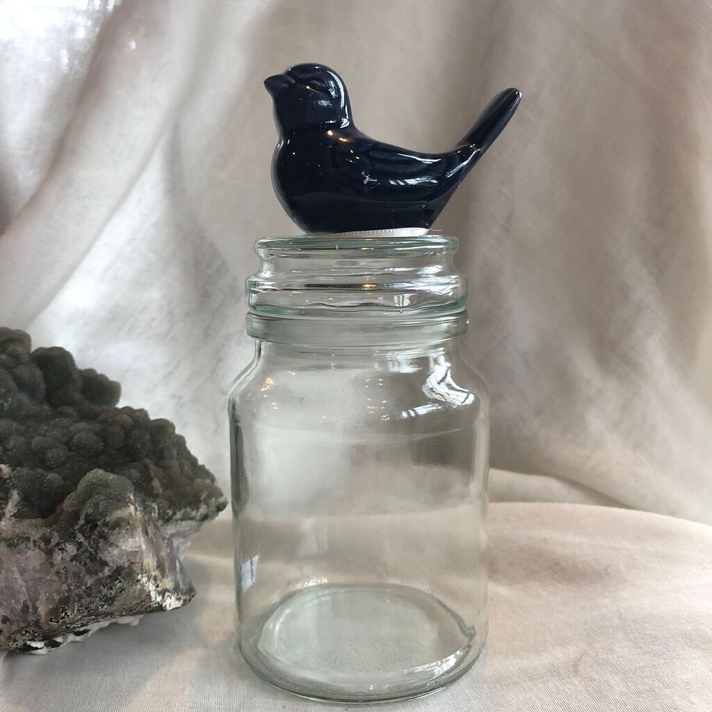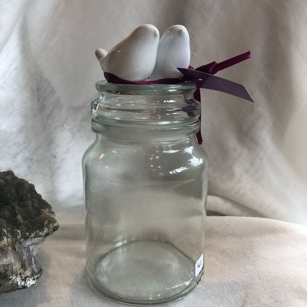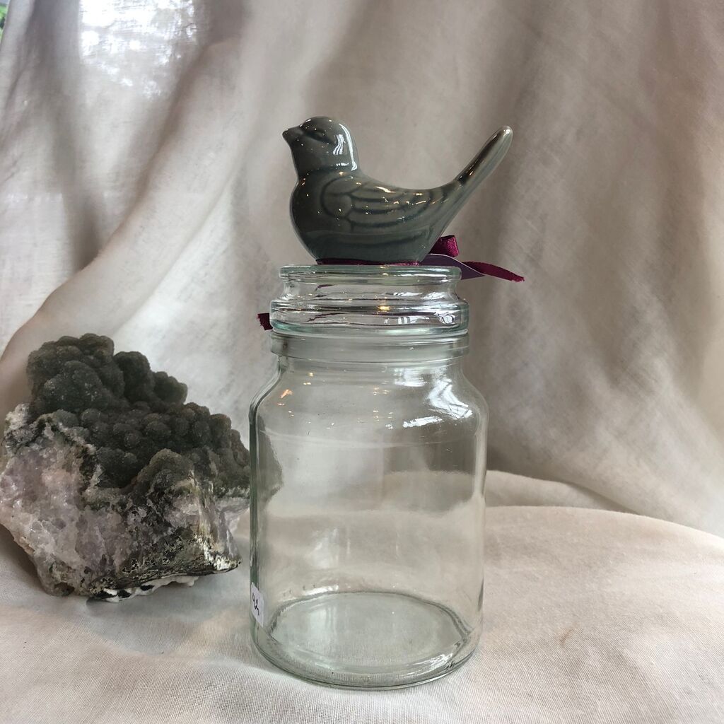 Pote de vidro com detalhe em Cerâmica feito à mão por Artha Cerâmica.