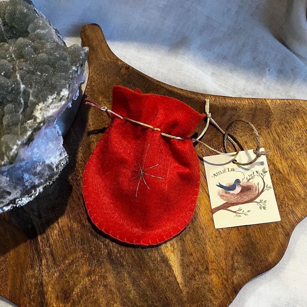 Saquinhos de feltro com detalhe em flores feito artesanalmente com bordado.