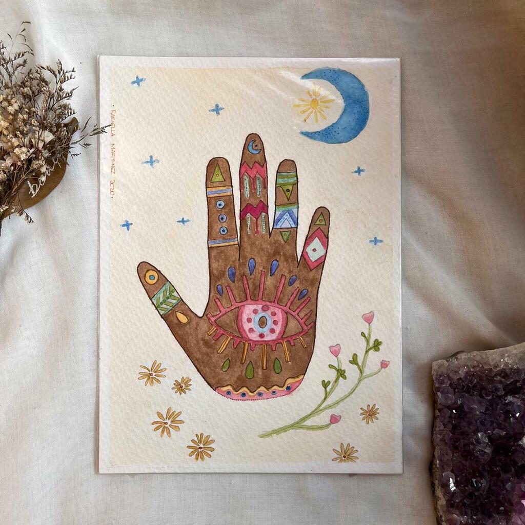 * Poster pintado em aquarela G ''Mão Mística'' - Hahafaella