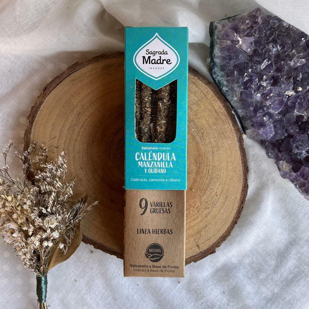 Composição: Flores de calêndula, flores de camomila, olíbano, óleo essencial de camomila e calêndula, carvão, aglutinante natural à base de plantas.